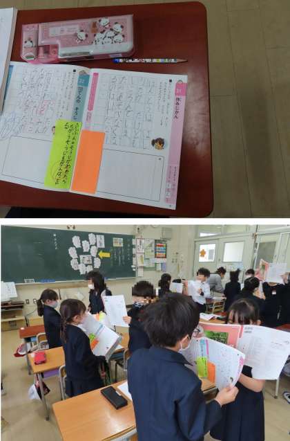 1年生なりに、一生懸命に考えてノートに書いていました。