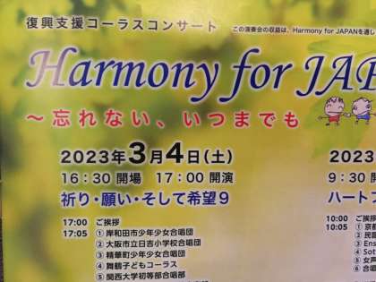 今日、日吉小合唱団は、東北復興支援コーラスコンサートに参加するため、長岡京記念文化会館に来ています。
