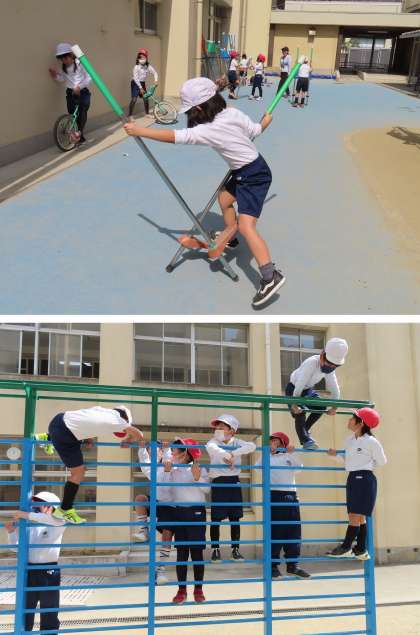 自分が挑戦したい、うまくなりたい遊具を、練習しています。