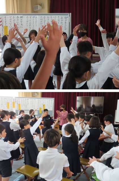 歌詞を工夫したり振付けを考えたり・・担任の先生に喜んでもらおうと音楽の先生と一緒に考えました。