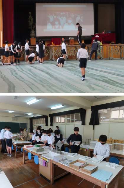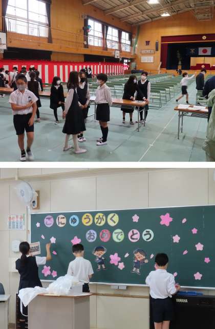 今日は、入学式準備のために、新6年生の子どもたちが手伝いに来てくれました。