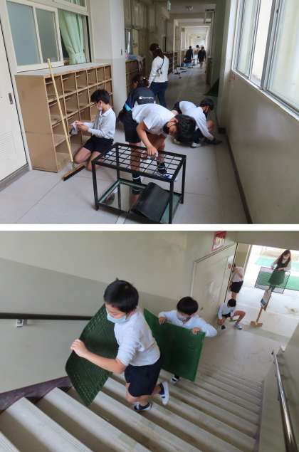 会場となる講堂、1年生の教室、トイレ、廊下、階段など、明日の入学式に関わる場所を、みんなで手分けしてきれいにしてくれました。