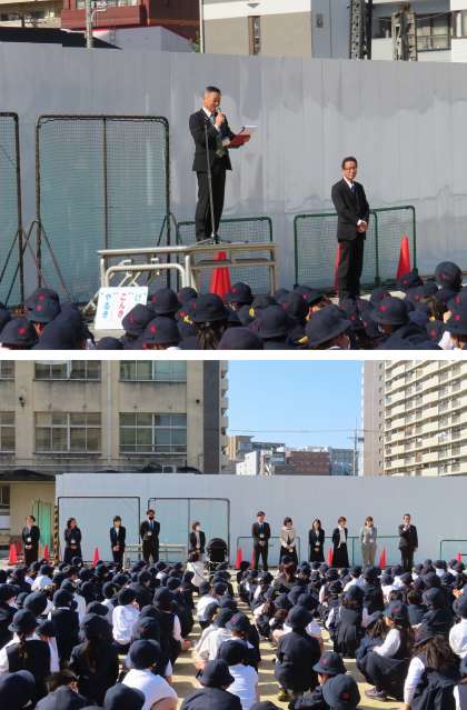今日は、今年日吉小に来られた教職員の方の『着任式』、そして1学期の『始業式』です。
