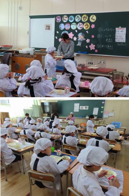 12時頃に教室に行ってみると、もうどのクラスも食べ終わりかけていて、段取りのよさにびっくりしました。