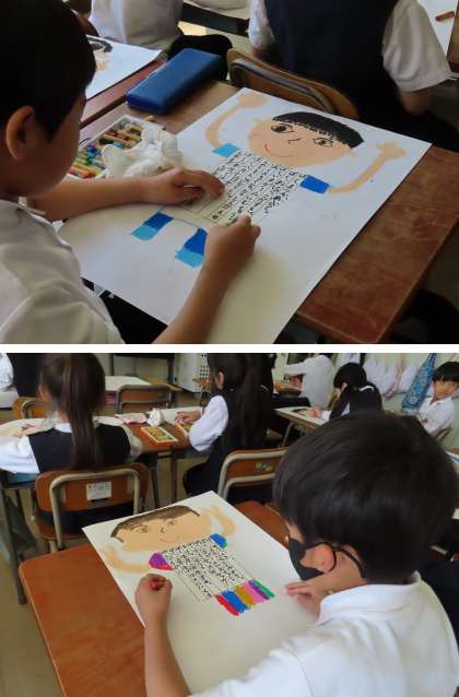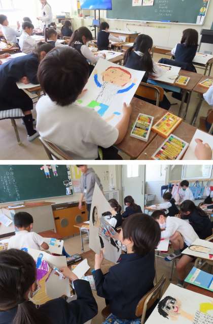 2年生が、クレパスで自分の絵を描いていました。