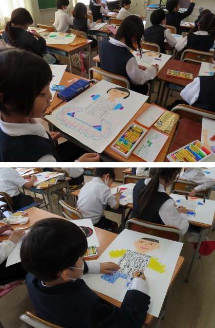 学習参観のときには、教室の後ろに掲示しているそうです。