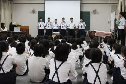 最後に、「傷つく人を少しでもなくせないかという思いから、取り組みを始めました。身近な家族や友だちを大切にしてほしい、ここにいるみんなの笑顔を守りましょう」という言葉で締めくくった中学生たちは、しっかり日吉小の6年生に語りかけていました。