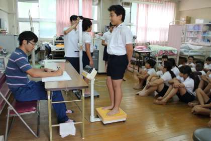 2学期になって早々、発育測定が始まっています。今日は、6年生が保健室で、身長・体重をはかりました。