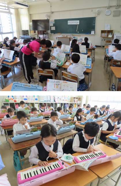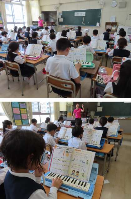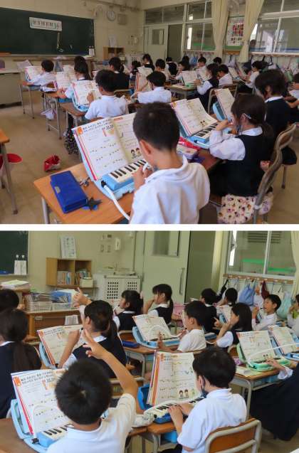 2年生が鍵盤ハーモニカを使って、『かっこう』の曲を練習していました。