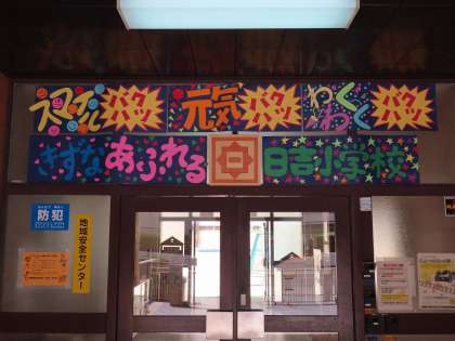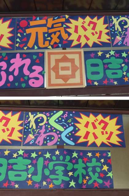 さぁ、これから日吉小学校1100人みんなで『スマイル バクハツ 元気 バクハツ わくわく バクハツ きずなあふれる 日吉小学校』にしていきましょう!