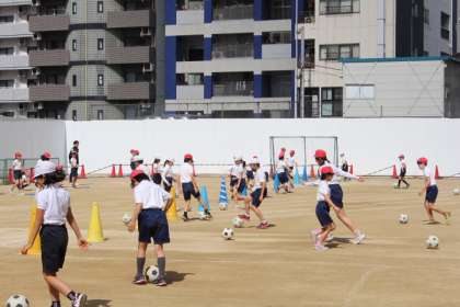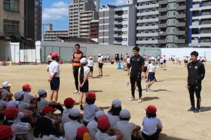 今日は、関西を代表するフットサルチーム『シュライカー大阪』の選手の方に来ていただき、5年生にフットサルの指導をしていただきました。
