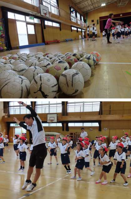今日は、『セレッソ大阪』が、1年生にサッカーを教えに来てくれました。