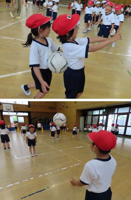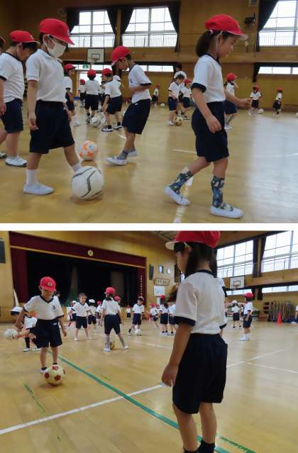 1時間だけの指導でしたが、ボール慣れから、パス・ドリブルなど盛りだくさんのメニューの練習をしました。