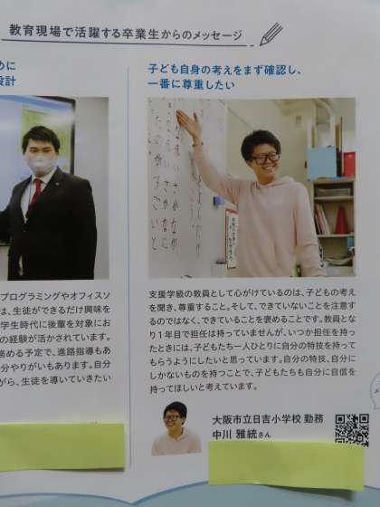 『教育現場で活躍する卒業生からのメッセージ』という欄です。