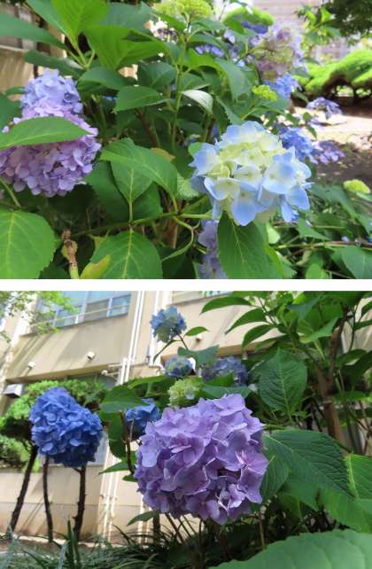 前庭に咲いているアジサイが、とてもきれいだったので、写真を撮っておきました。