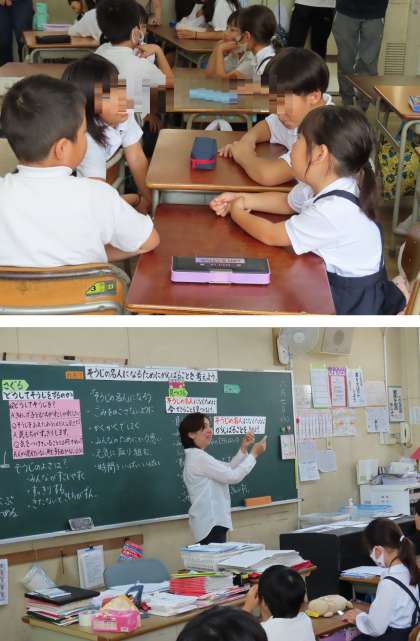 子どもたちは、いろいろな立場の人がどうして掃除をするのか、その理由を聞いたり、考えたりすることで、自分たちができることを考えていました。