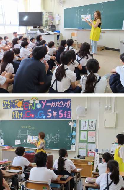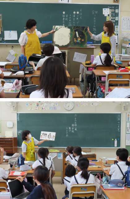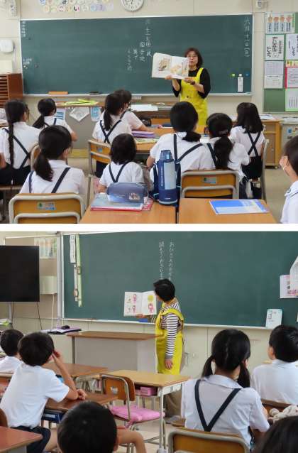 今日は、朝の会の時間に、『おひさん』の方が、5年生の教室で読み聞かせをしていただきました。