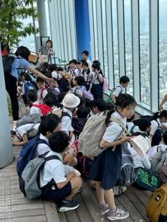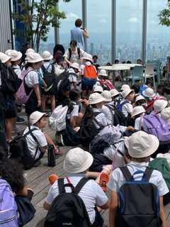 ハルカスの展望台に、登ってきました。クラス毎に記念撮影をします。
