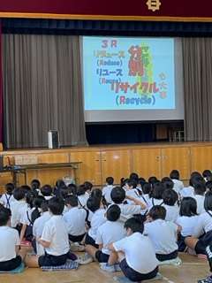 環境局の方に来ていただき、ゴミの分別と、リサイクルについて、勉強します。