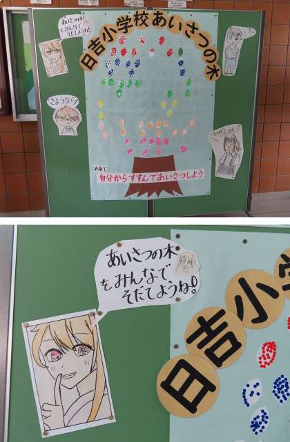 協力委員会の子どもたちが中心となって、朝、玄関に立ってあいさつをしてくれたり、学級ごとにシールを集めて、あいさつの木を葉っぱでいっぱいにしようとしたりしました。