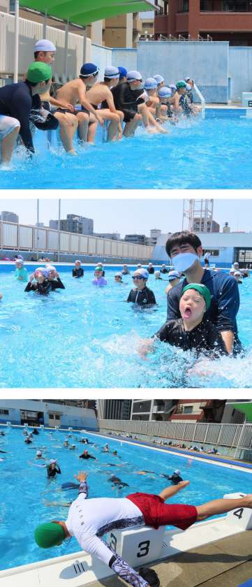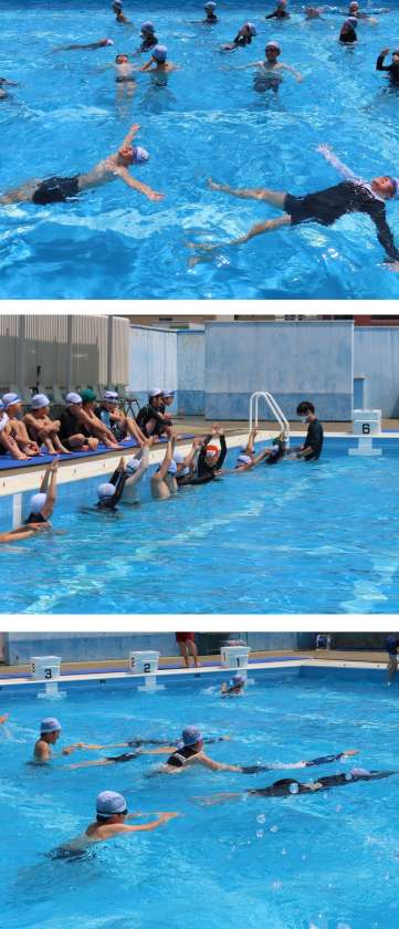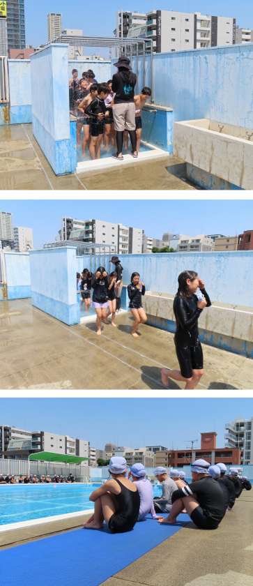 ただ、今年は小学校のプールが使えないので、旧堀江中学校のプールをお借りし、5・6年生のみのプール水泳となりました。
