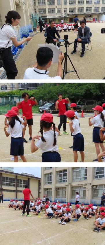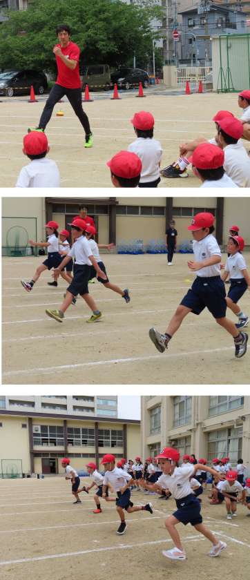 今日は、大阪ガスが運営する陸上クラブが日吉小に来ていただき、「かけっこ教室」を実施していただきました。