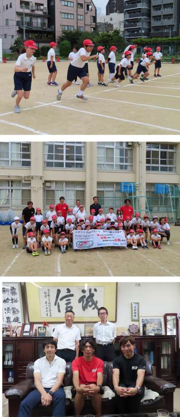 この事業には、西区も連携しているので、三村区長とオリンピックメダリスト朝原選手の対談なども同じ運動場で行われました。