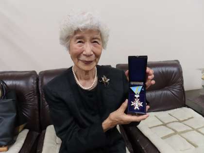 日吉小が創立120年の頃の校長先生、植田一美先生が、この度、勲章をいただき、本日来校されました。