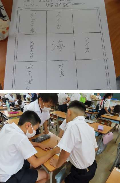 そのあと、ベストフレンド班で集まって夏で思いつく言葉を書き込んでいきました。