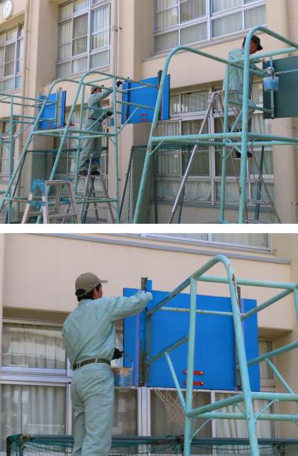 管理作業員さんは、合同作業で本校のバスケットゴール4台の塗装をしてくれています。