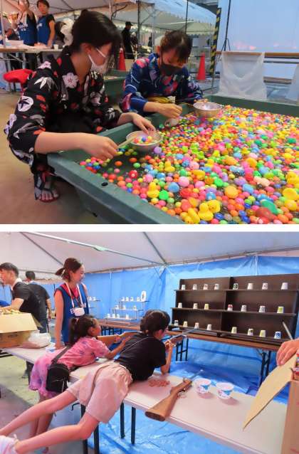 盆踊りのやぐらはなく、残念がる方もおられましたが、それでも夜店には人だかりとなり、大盛り上がりでした。