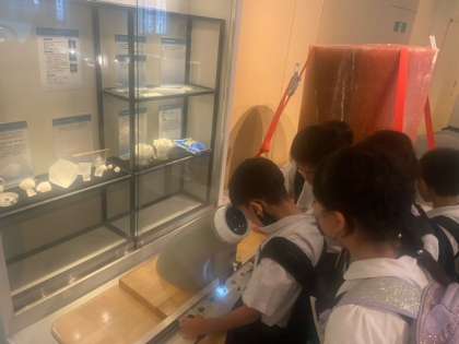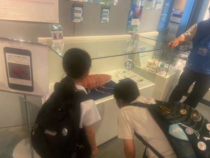 光や電気だけでなく、においや鉱物など、いろいろな展示を、班の友だちと見学しました。