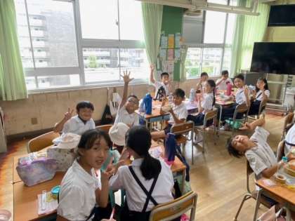 楽しいお弁当タイムです。教室でお弁当を食べるのは、特別な感じがして、とても嬉しそうでした。