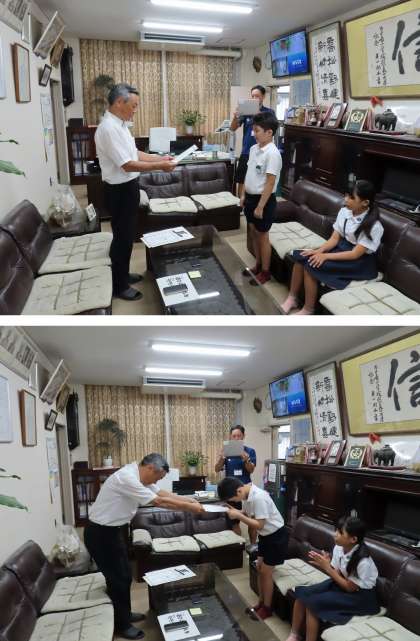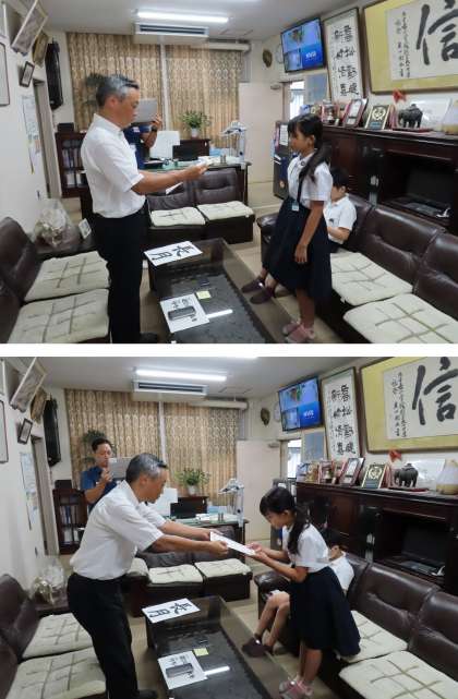 今日の全校朝会では、昨年度の大阪市絵画・版画展で賞状をいただいたお友だちの紹介をしました。
