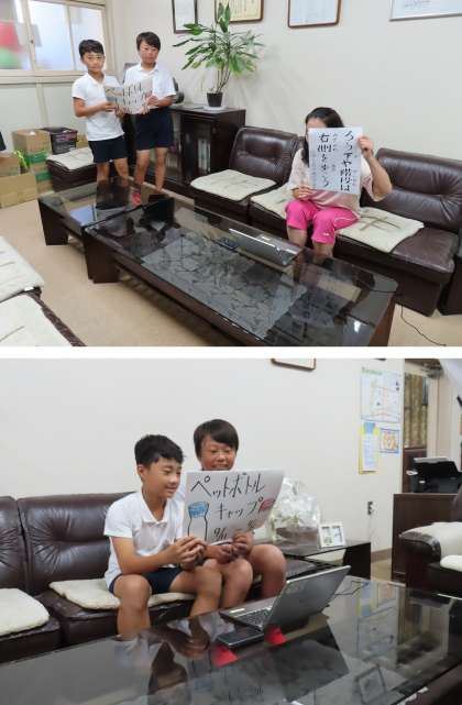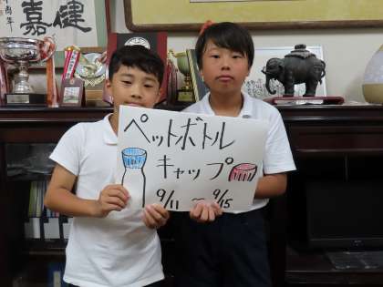 協力委員会が、ペットボトルのキャップを集める呼びかけをしていました。