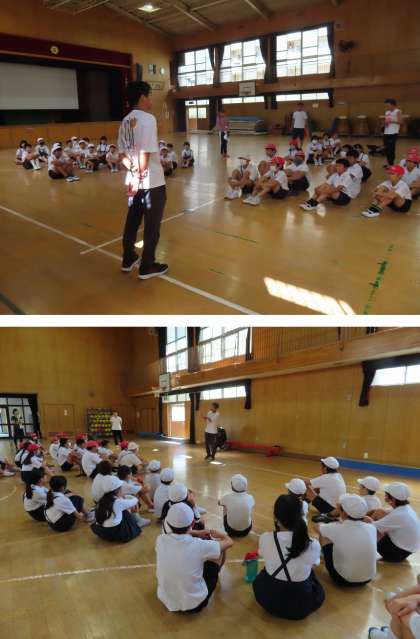 応援団の子どもたちは、それに応えるかのように、姿勢正しく聞いていました。