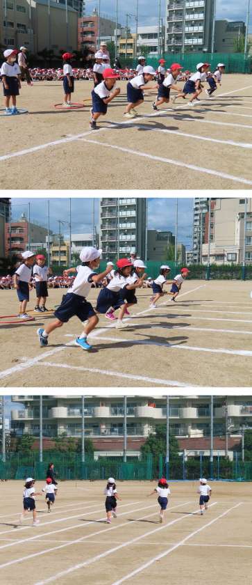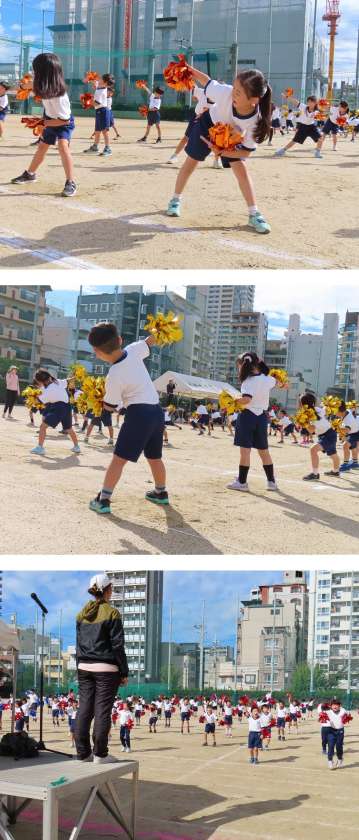 堀中グラウンドは初めてですが、1年生は日ごろの練習通りにダンスを踊ったり、かけっこをしたりしていました。