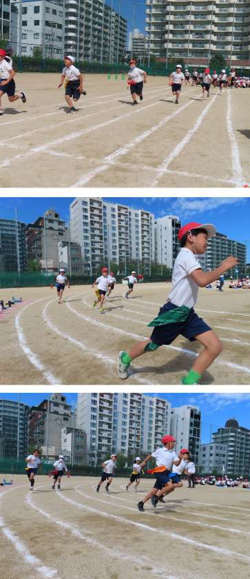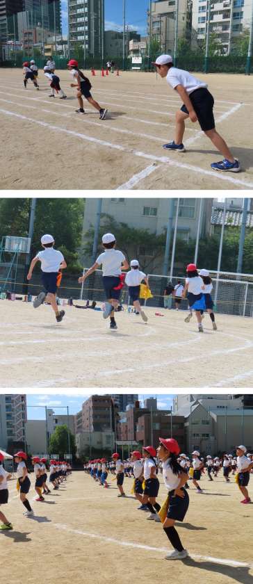スタートラインやゴールの場所を確かめながら、走っていました。