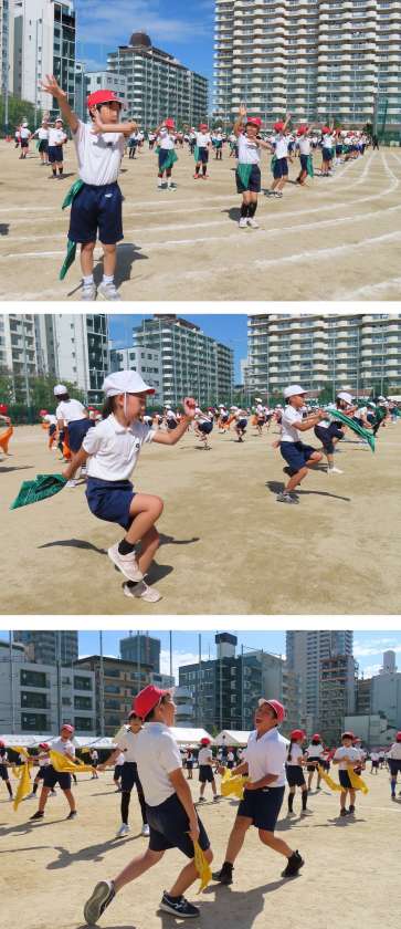 ダンスでは立つ場所を確認し、手にはバンダナをもって踊っていました。