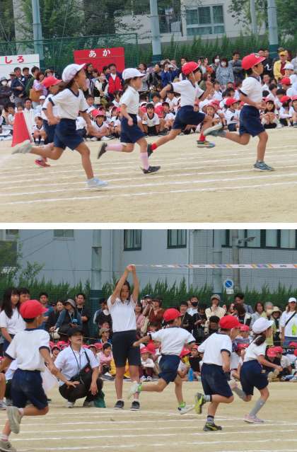各学年6枚ずつ写真で、運動会の様子を紹介します。