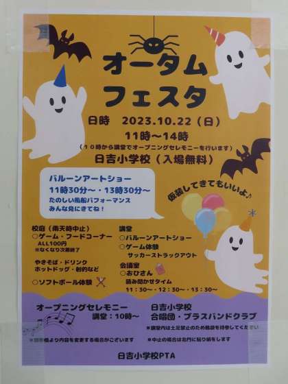 22日(日)は、PTA主催の『オータムフェスタ』が行われます。