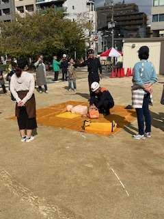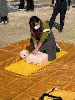 消防署の方から、救急救命講習を受けて、実際に体験してみます。