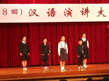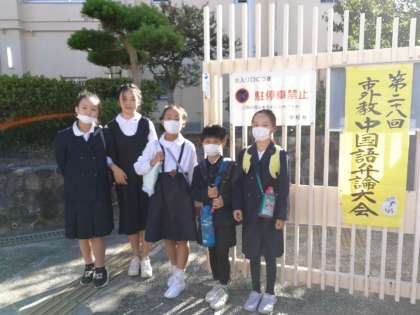 今日は日吉小学校の子ども達5人が、住吉小学校で行われる「中国語弁論大会」に出場しました。