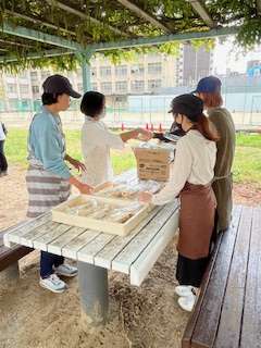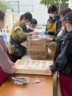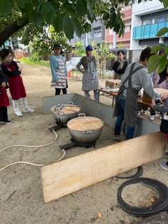 女性会とPTAの皆さんが、炊き出し訓練を行いました。