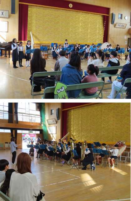 講堂で、まずブラスバンドクラブの発表がありました。