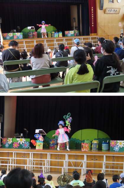 講堂では、キックターゲットやバルーンアートショーも行われています。