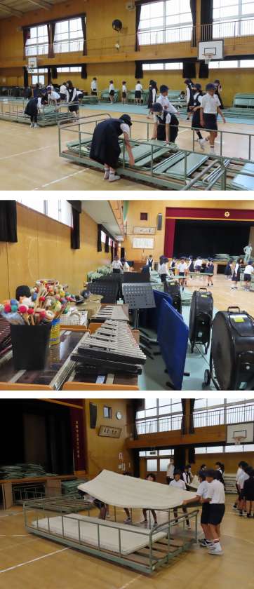 今日は5年生の子どもたちが、学習発表会に向けて、講堂の後片付けとともに会場の準備をしてくれました。