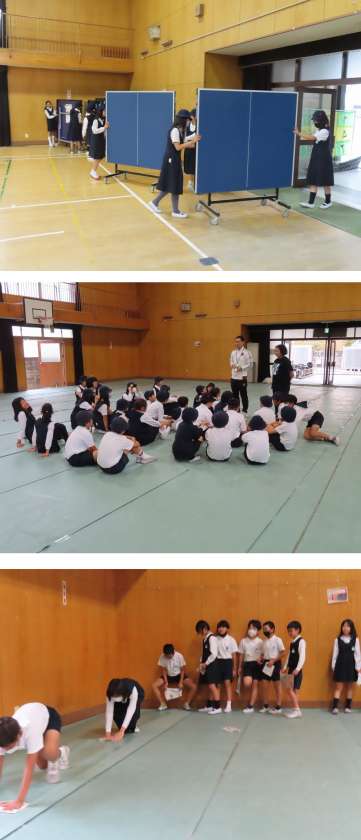 マットや卓球台をしまったり、シートを引いたり・・