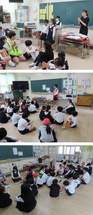 「日吉小学校といえば・・ひよっぴー・・ひよっぴーといえば・・黄色・・」というように、言葉をつないでいきます。