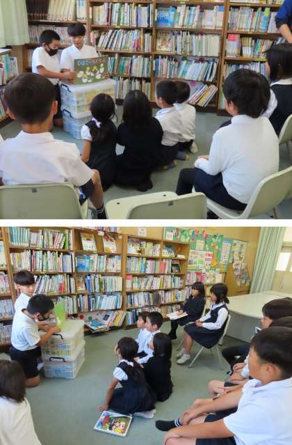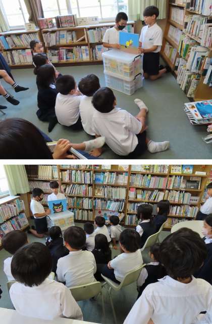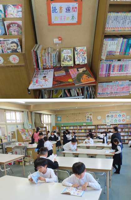 そして、今週は、図書室の一角で、図書委員の子どもたちが、絵本の読み聞かせを20分休みとお昼休みにしてくれています。